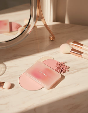 Sweep a blush brush over the lighter shade and apply it to the apples of your cheeks for a brightening effect. Use the deeper shade along the cheekbones for added structure, or swirl both colours together for a balanced, multidimensional finish.