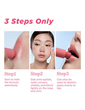Swipe the stick directly onto your cheeks, eyelids, or the hollows of your face. Use your fingertips or a makeup sponge to blend the edges outwards until the colour looks natural and soft.