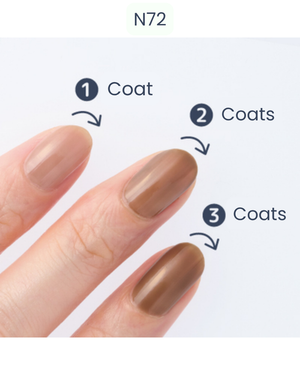 Clean your nails to remove any oils or old polish. Apply a thin base coat, then sweep the colour from the base of the nail to the tip. Allow the first layer to dry before adding a second coat for more intensity, and finish with a top coat for maximum shine.