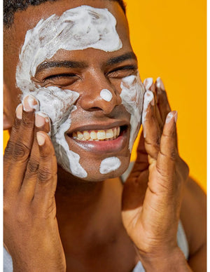 Wet your face and lather a pea-sized amount of cleanser between your palms. Gently massage the foam into your skin from forehead to jaw. Rinse thoroughly with warm water.